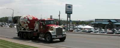 The Greenway Auto Mall, behind the flaming fast Central Premix truck.....